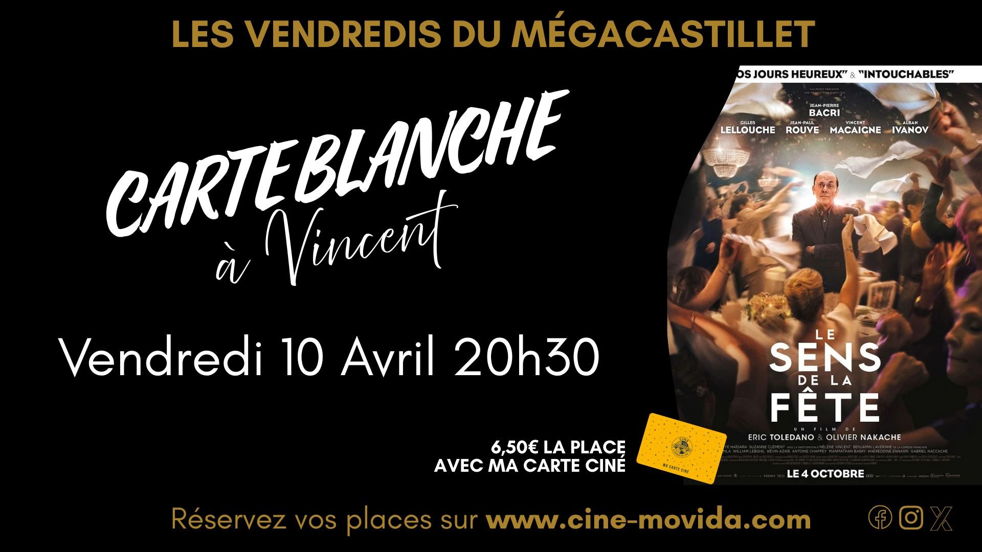 Dans le cadre des séances CARTE BLANCHE À L’ÉQUIPE, un membre de l’équipe du MégaCastillet vous invite à découvrir (ou redécouvrir) l’un de ses coups de cœur : Le Sens de la fête.