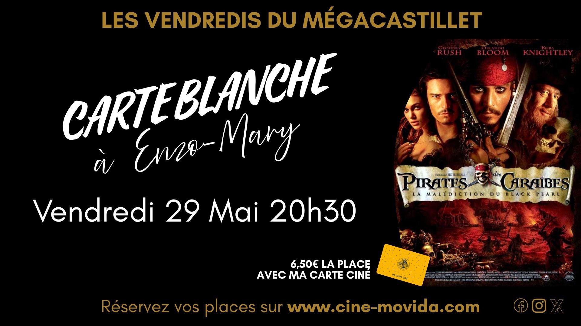Dans le cadre des séances CARTE BLANCHE À L’ÉQUIPE, un membre de l’équipe du MégaCastillet vous propose de redécouvrir un grand film d’aventure : Pirates des Caraïbes : La Malédiction du Black Pearl.