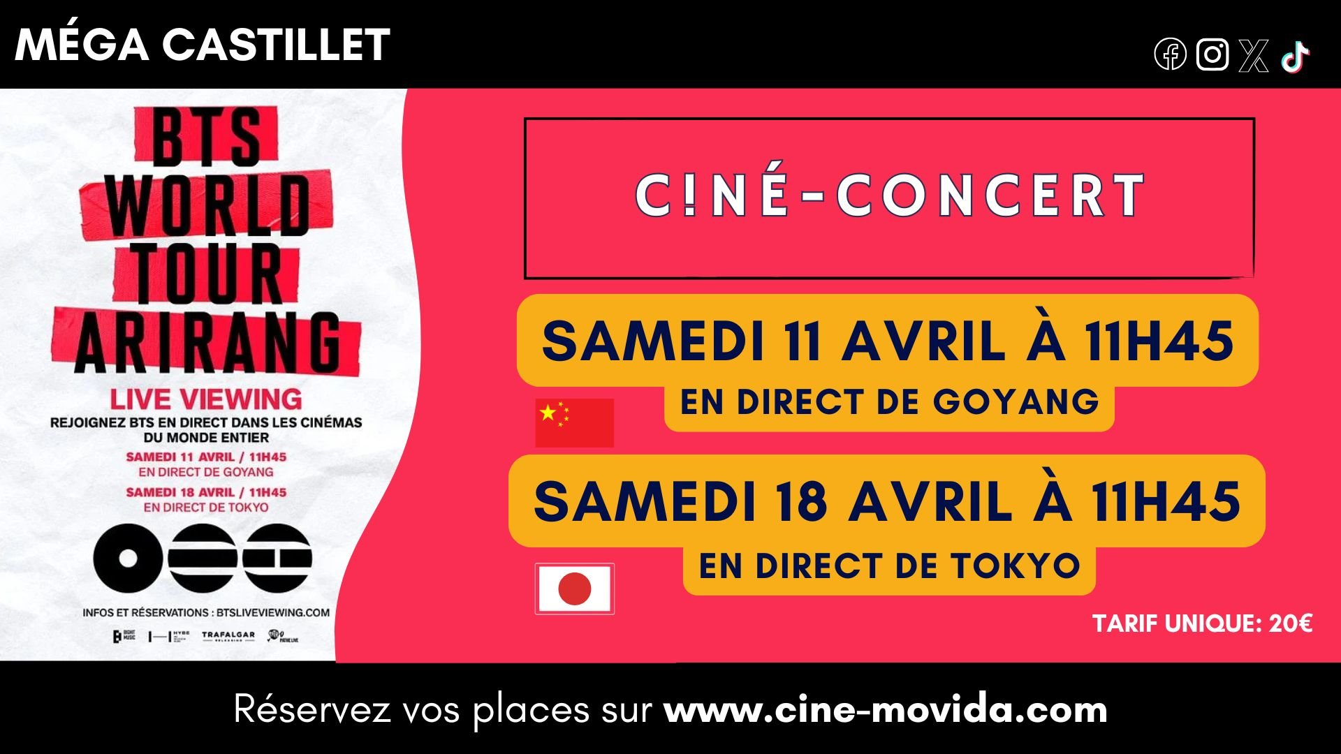 Partagez sur grand écran, partout dans le monde, les moments électrisants du retour culturel marquant de BTS en direct dans les cinémas du monde entier le 11 avril depuis Goyang et le 18 avril depuis Tokyo.
